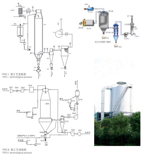壓力式噴霧干燥造粒機(jī)是采用壓力式霧化器借助隔膜泵的壓力將溶液或漿狀的物料霧化成細(xì)微液滴,使表面積顯著增大,經(jīng)與熱風(fēng)進(jìn)行充分熱交換得以快速干燥(十幾秒至幾十秒),從而獲得粉體或細(xì)小顆粒產(chǎn)品的設(shè)備。