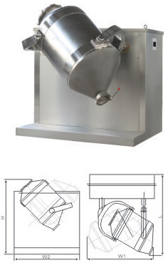 結(jié)構(gòu):該機(jī)由機(jī)座、傳動(dòng)系統(tǒng)、電器控制系統(tǒng)、多向運(yùn)動(dòng)機(jī)構(gòu)、混合筒等部件組成。與物料直接接觸的混合筒采用優(yōu)質(zhì)不銹鋼材料制造,桶體內(nèi)外壁均經(jīng)鏡面拋光。