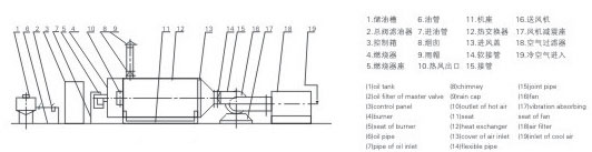 型號(hào)/參數(shù) | 輸出熱量(KJ/h) | 輸出風(fēng)量(m3/h) | 輸出溫度(℃) | 耗油量(kg/h) | 燃燒器型號(hào) |