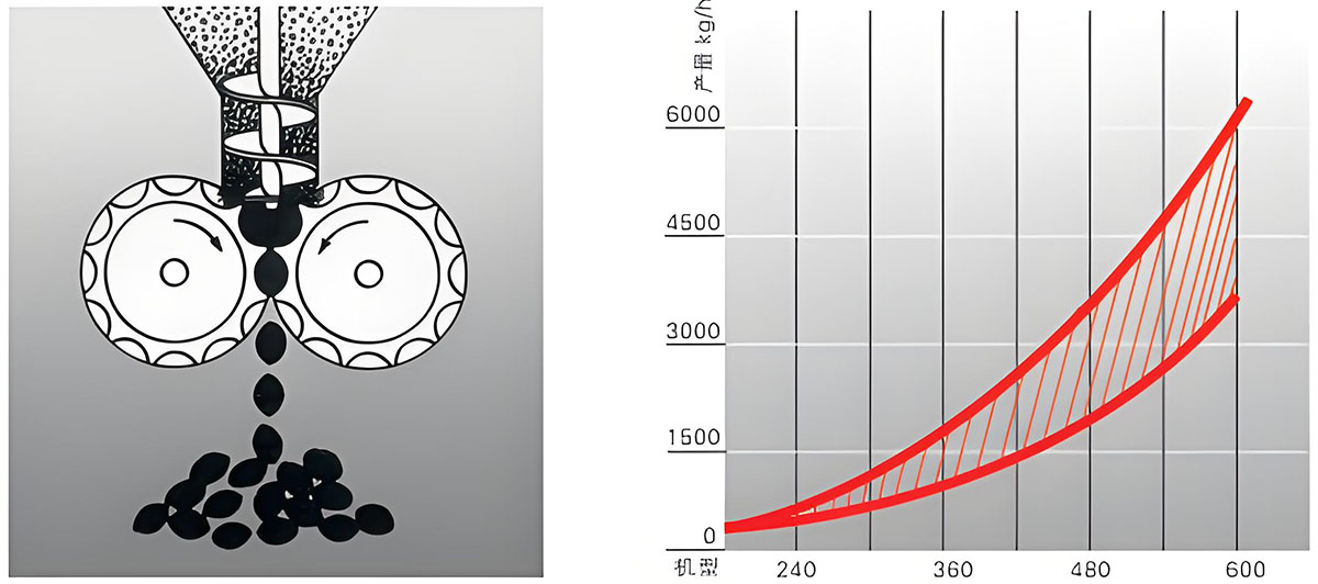 ● 成品產(chǎn)量高,單機(jī)產(chǎn)量可達(dá)2000kg/h以上(堆積密度1.5×103kg/m3)